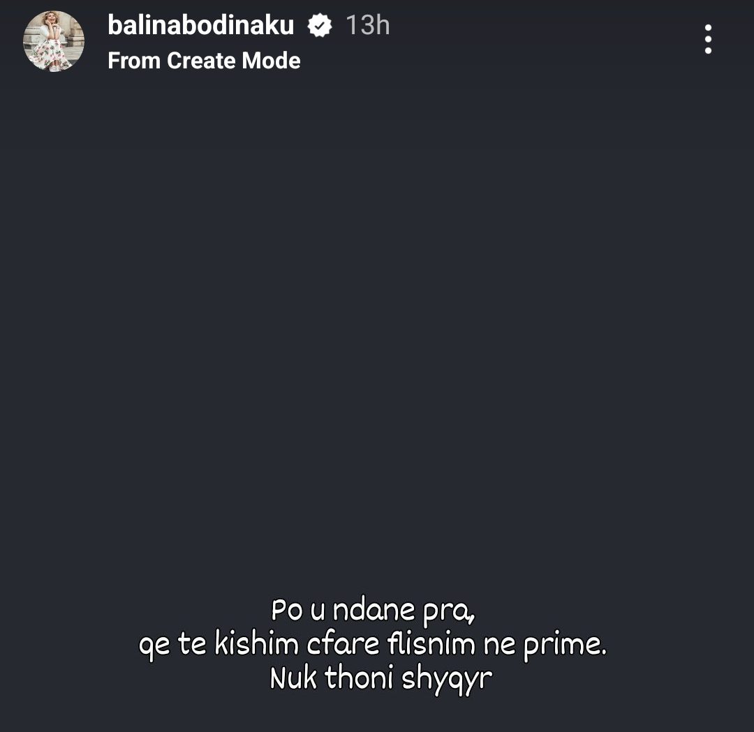 Më pas, Balina postoi një tjetër story ku thotë: “Po u ndanë pra, që të kishim çfarë të flisnim në Prime. Nuk thoni shyqyr”.