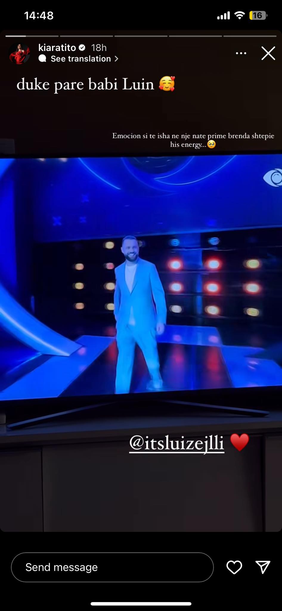 Kiara Tito, ish banore e edicionit të kaluar të BBV Albania, njëkohësisht gruaja e Luizit, e përcjelli atë nga televizioni.