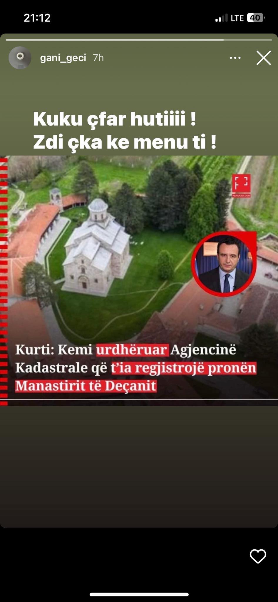 Ish deputeti i Kuvendit të Kosovës, Gani Geci ka reaguar pas vendimit të Kryeministrit Kurti për Manastirin e Deçanit.