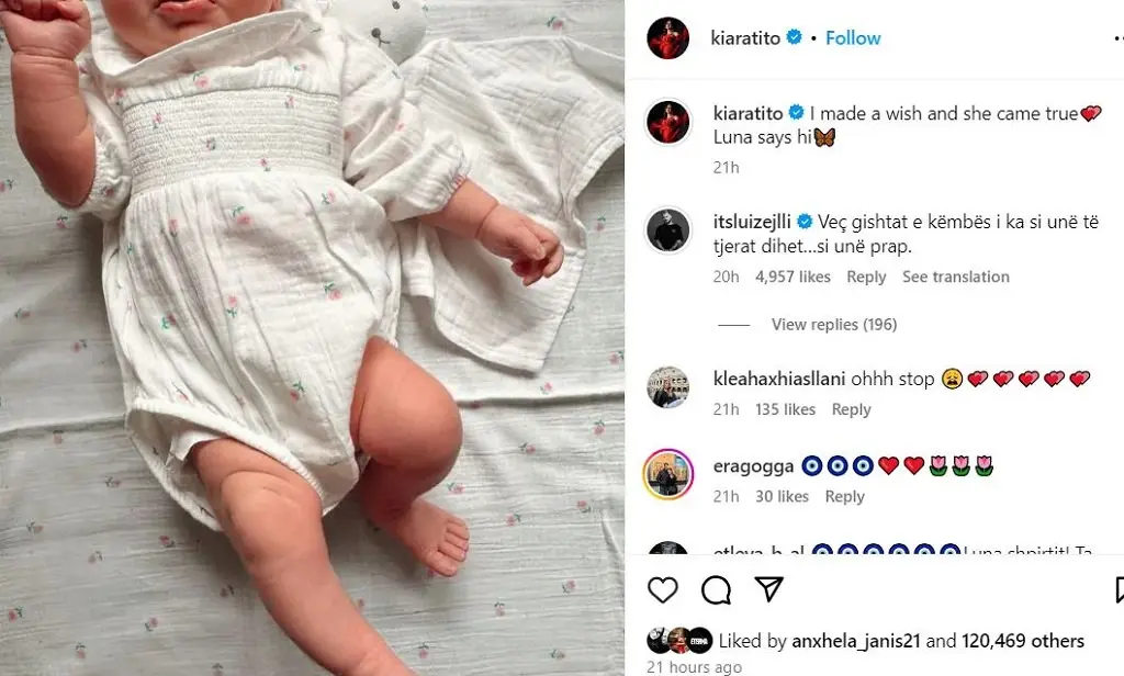 Kiara dhe Luiz jane bere prinder te nje vajze qe e kane quajtur Luna Mari Ejlli.