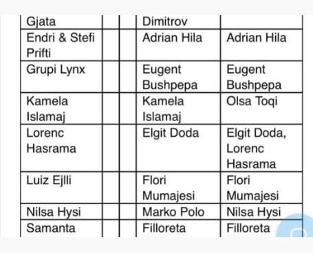 Emrat që po fliten janë Elsa Lila, Ardit Çuni, Vesa Luma, Samanta Karavella e Vesa Smolica.