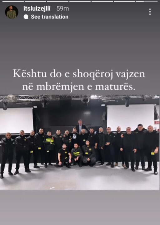Së fundi ka publikuar një foto krah një grupi sigurimi, ku mbishkrimi ka marrë të gjithë vëmendjen.