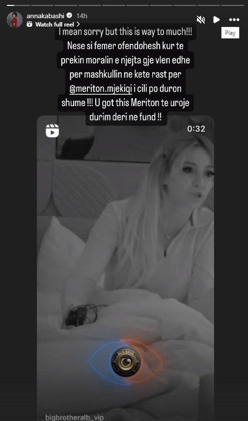 Këto fjalë mbështetëse janë shoqëruar më një video, ku shihet Meritoni duke debatuar më Sarën, e cila e ofendon.