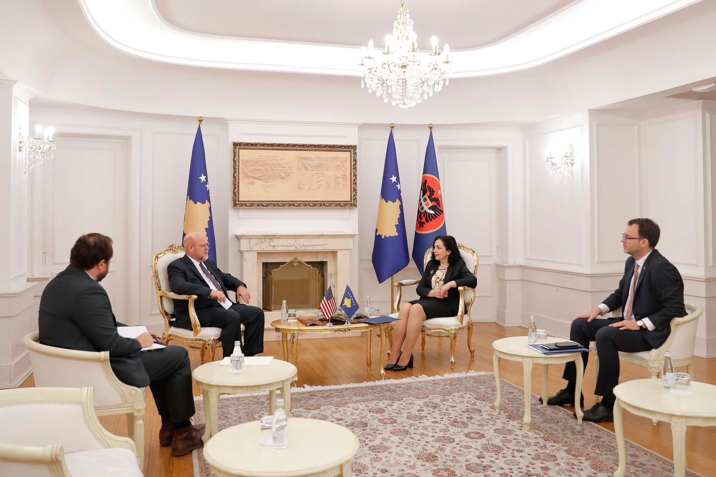 Presidentja e vendit, Vjosa Osmani, ka pritur sot në takim të rregullt ambasadorin e Shteteve të Bashkuara të Amerikës, Jeffrey Hovenier.