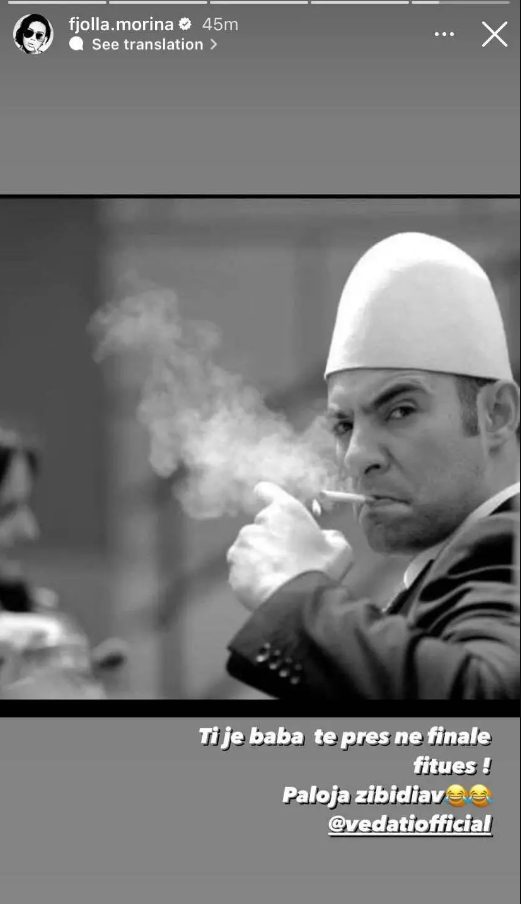 “Ti je baba të pres në finale, fitues!! Paloja zibidiav”, ka shkruar Fjolla.