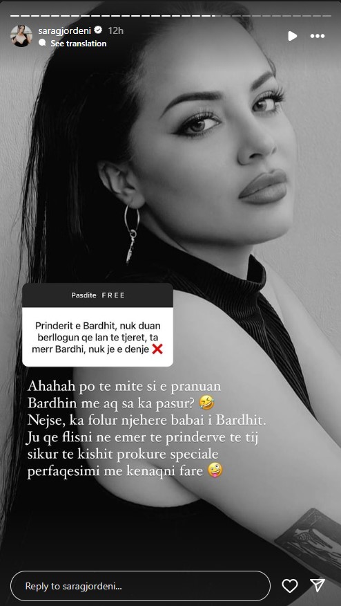 “Ahahah po të mitë si e pranuan Bardhin me aq sa ka pasur? Nejse, ka folur një herë babai i Bardhit. Ju që flisni në emër të prindërve të tij sikur të kishit prokurë speciale përfaqësimi. Me kënaqni fare”, është shprehur Sara