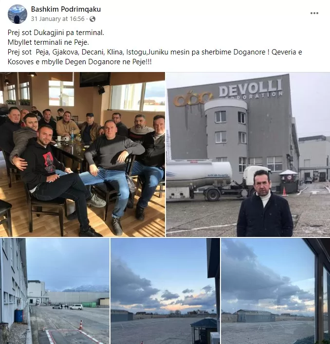 “Prej sot Dukagjini pa terminal. Mbyllet terminali ne Peje. Prej sot Peja, Gjakova, Deçani, Klina, Istogu, Juniku mesin pa sherbime doganore ! Qeveria e Kosoves e mbylle degen doganore ne Peje”, shkroi ai në Facebook.