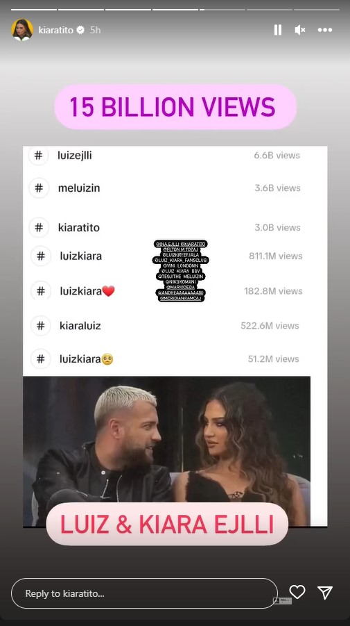Së fundmi në “Instagramin” e Kiarës është hedhur një postim, përmes të cilit zbulohet se dyshja kanë grumbulluar 15 miliardë shikime së bashku.